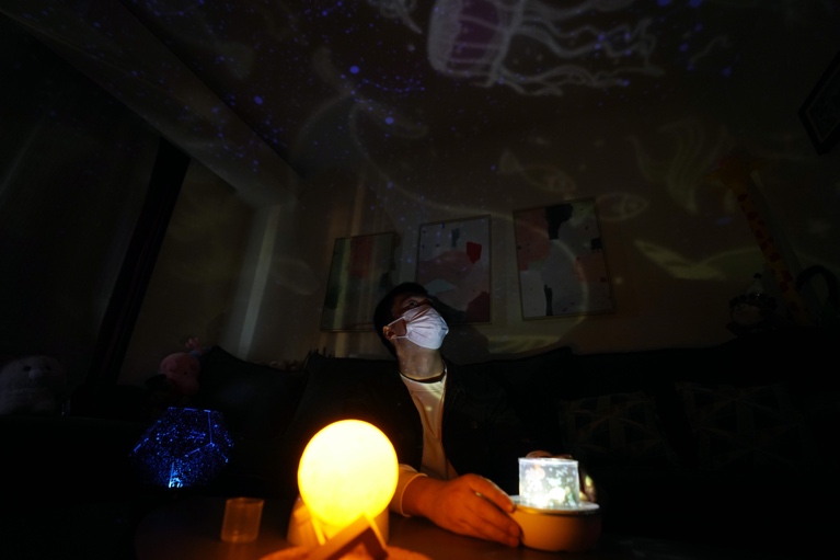 黃紹鑫測試智能星空燈的使用效果 來源:受訪方供圖