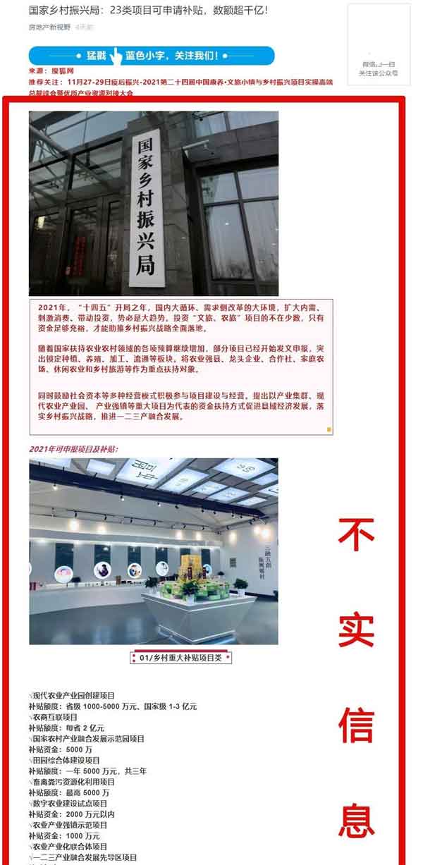 國家鄉(xiāng)村振興局辟謠:“23類項(xiàng)目可以申請補(bǔ)貼,數(shù)額超千億”系不實(shí)信息
