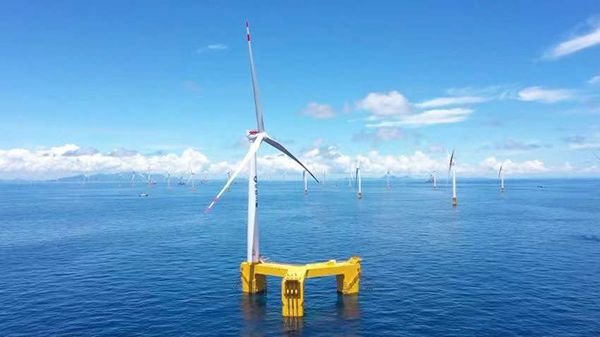 全球首臺抗臺風型漂浮式海上風電機組。受訪者供圖