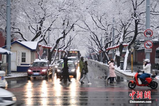 3月18日,北京市民冒雪出行。當(dāng)日,北京持續(xù)降雪降溫。 中新社記者 田雨昊 攝