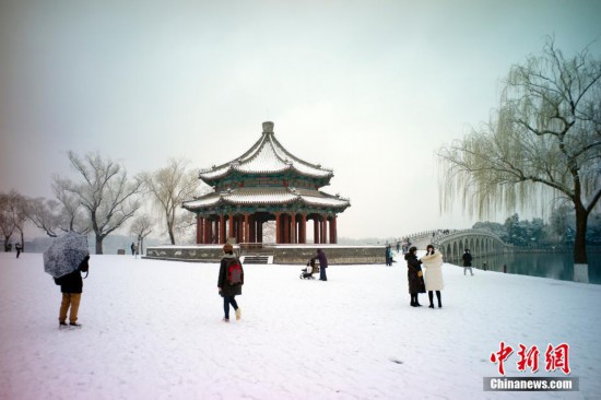 北京持續(xù)降春雪 民眾雪中觀景【2】
