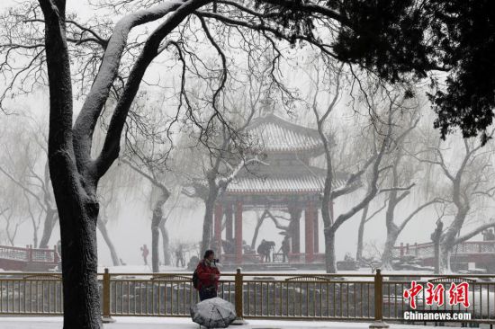 北京持續(xù)降春雪 民眾雪中觀景【6】