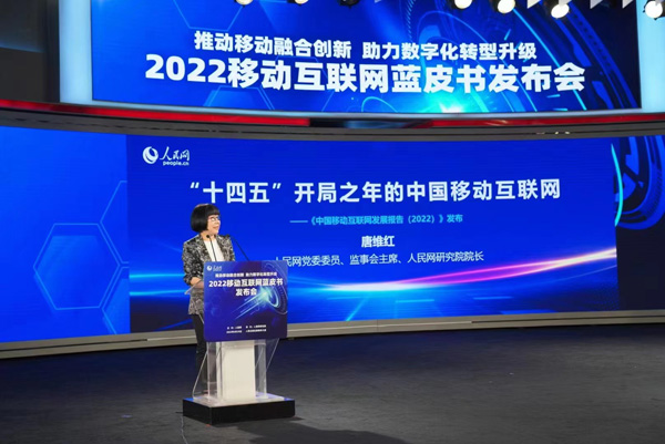 人民網(wǎng)黨委委員、監(jiān)事會(huì)主席、人民網(wǎng)研究院院長(zhǎng)唐維紅發(fā)布《中國(guó)移動(dòng)互聯(lián)網(wǎng)發(fā)展報(bào)告(2022)》。人民網(wǎng) 張若涵攝