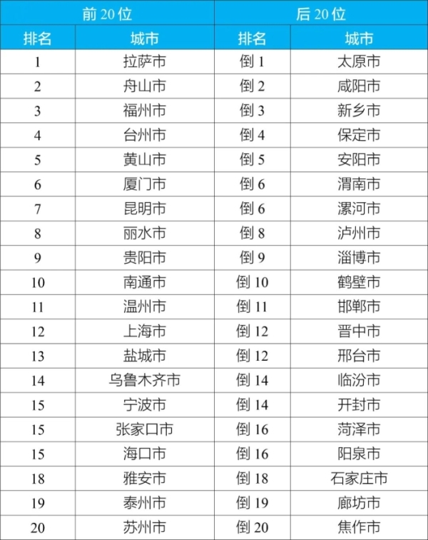 - 環(huán)境空氣質(zhì)量相對較差及較好的20個城市名單出爐