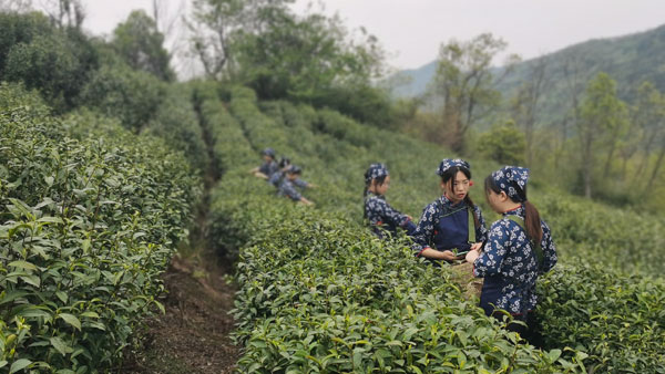 “我是這個村莊的,每天早上六點鐘上山采茶,下午五點鐘下山,有師傅教我們采,一天下來可以掙到110—120塊錢,在這個采茶季,收入增加了不少哩!闭f到收入的變化,村民徐金藍(lán)笑開了花。