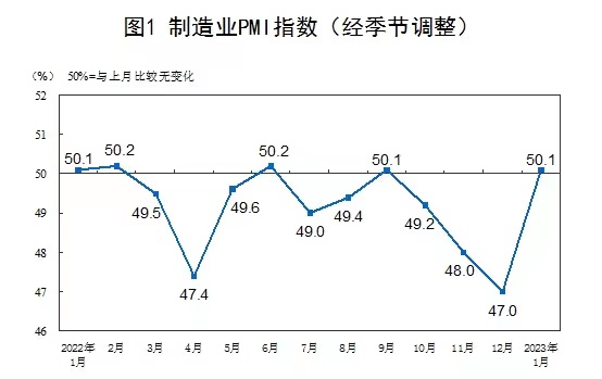 人民網(wǎng)北京1月31日電 (記者楊曦)國家統(tǒng)計局31日公布數(shù)據(jù)顯示,2023年1月份,制造業(yè)采購經(jīng)理指數(shù)、非制造業(yè)商務(wù)活動指數(shù)和綜合PMI產(chǎn)出指數(shù)分別為50.1%、54.4%和52.9%。