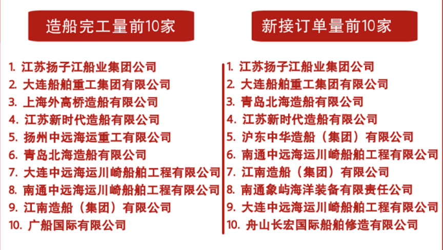 2022年我國造船完工量前10家企業(yè)和新接訂單量前10家企業(yè)。圖片來源:中國船舶工業(yè)行業(yè)協(xié)會