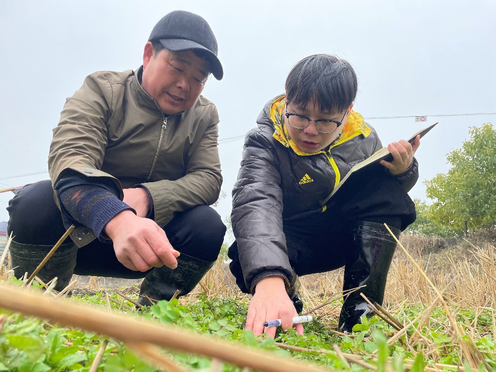 在湖南益陽武圣宮鎮(zhèn)的千畝綠肥基地,農(nóng)技人員和種植大戶正在查看綠肥長勢。宋梅攝