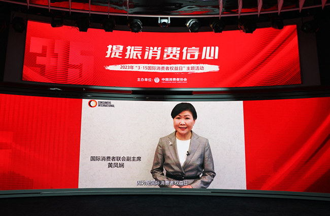 主題活動(dòng)得到國際消費(fèi)者聯(lián)會(huì)的支持。國際消聯(lián)副主席黃鳳嫻代表國際消聯(lián)通過視頻寄語,對(duì)本次活動(dòng)主題予以肯定,同時(shí)期待中國消費(fèi)者組織與國際消聯(lián)其他成員一道,為全球消費(fèi)者創(chuàng)造更美好的前景。