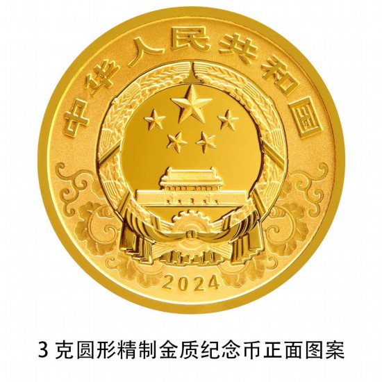 3克圓形金質(zhì)紀念幣為精制幣,含純金3克,直徑18毫米,面額50元,成色99.9%,最大發(fā)行量150000枚。