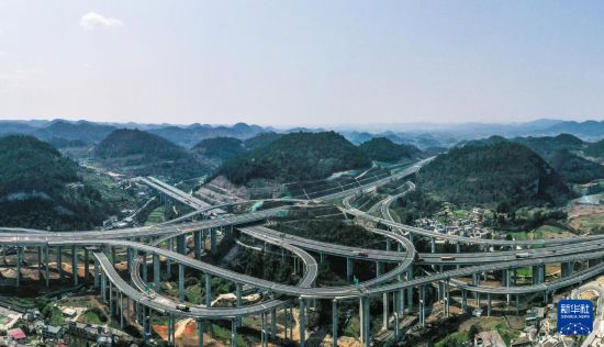 這是3月21日拍攝的貴黃高速公路延伸段馮家莊樞紐(無(wú)人機(jī)全景照片)。