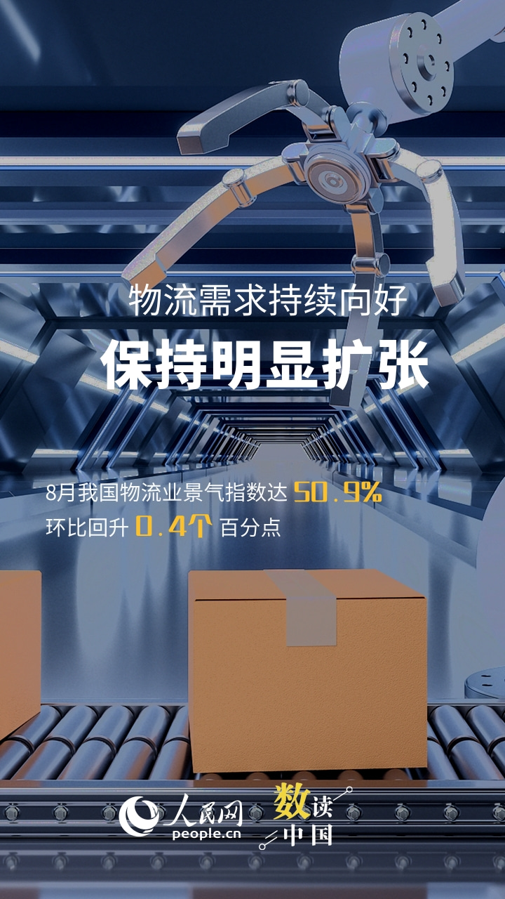 電商快遞、郵政及航空運(yùn)輸業(yè)務(wù)增長、鐵公水運(yùn)輸指數(shù)回升……近日,中國物流與采購聯(lián)合會發(fā)布數(shù)據(jù)顯示,8月份物流需求持續(xù)向好。隨著促消費(fèi)、穩(wěn)投資、保民生各項(xiàng)政策逐步落實(shí),產(chǎn)業(yè)鏈供應(yīng)鏈加速聯(lián)動,物流業(yè)務(wù)總量和新訂單業(yè)務(wù)量增速較快,東中西部地區(qū)均衡增長,物流業(yè)景氣指數(shù)保持?jǐn)U張態(tài)勢。一組海報帶你了解我國物流業(yè)運(yùn)行亮點(diǎn)。